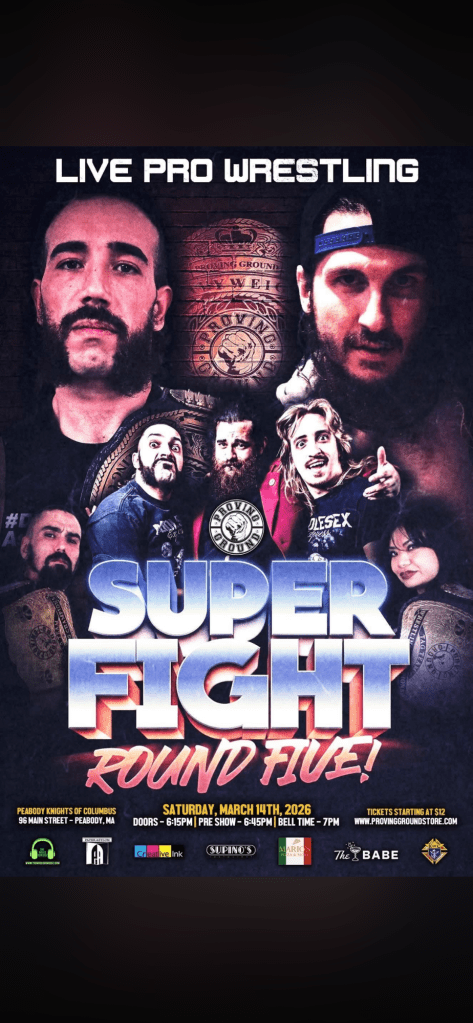 We are beyond excited to share our latest Proving Ground playlist, for their latest show, Super Fight Round Five! , which is tonight (Saturday March 15) in Peabody, Ma at The Knights Of Columbus.